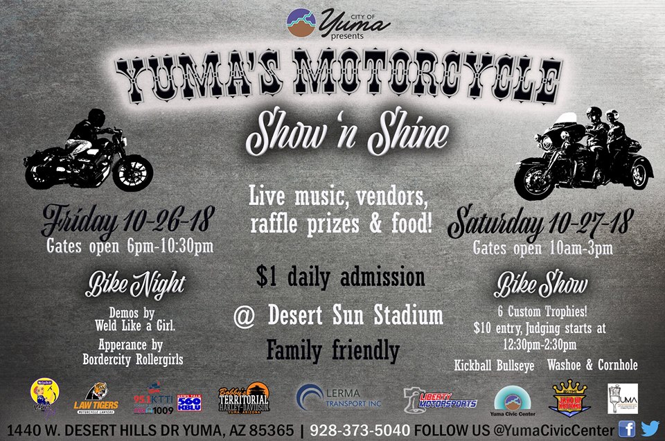 Show & Shine Motorcycle Fest Friday October 26th & Saturday October 27th at Yuma Civic Center.
